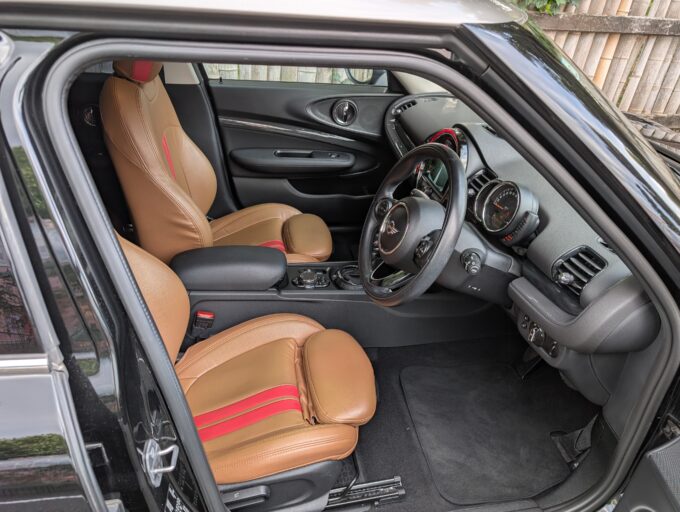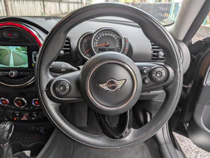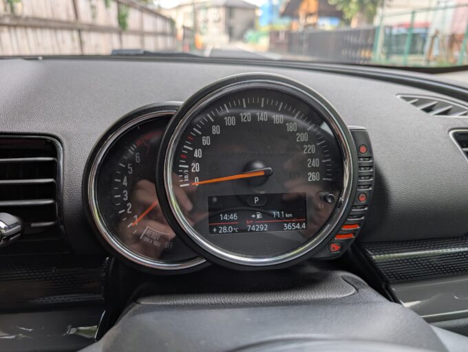 15 MINI Cooper S CLUBMAN Stock 2015年のクーパーSクラブマンが入庫しました。 ボディカラーはミッドナイトブラック/グレー、内装はブラウンのシートカバーが付いています。 車検は8年12月までの走行は75,000km。 コンフォートアクセス、ミラーETC、純正ナビ+フルセグTV、前後ドラレコ付き。動作確認していませんがグローブボックスにCDオーディオも付いています。 1,080,000円